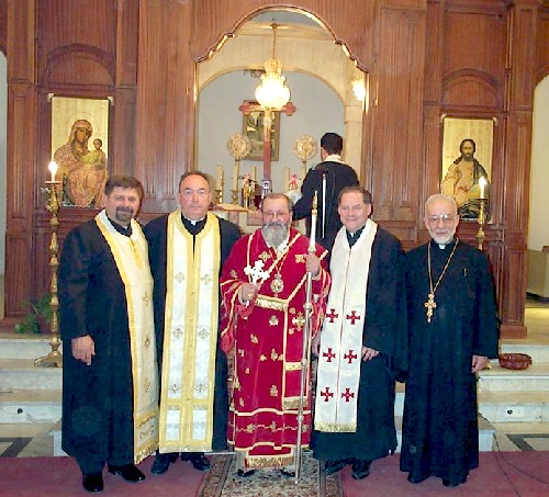 This past week-end, I visited Amman, Jordan. I was the guest of Archbishop George Al-Murr, the Greek Catholic Archbishop of Petra, Philadelphia and all Transjordan. The stay was arranged by Fr. Emad Al-Shaikh who was visiting in Jordan at this time. By the way, Philadelphia is not the city in Pennsylvania! Philadelphia is the ancient and biblical name of Amman. Archbishop George Al-Murr is in the red vestments.