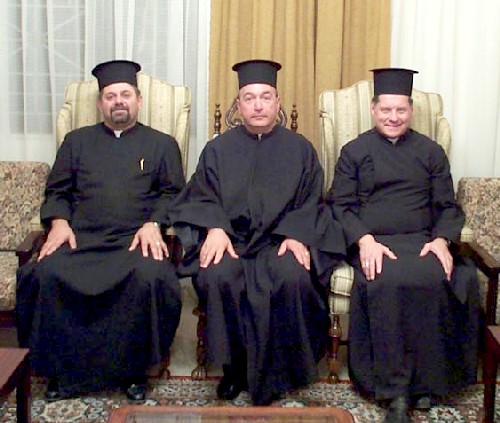 I was accompanied to Amman by Fr. Jim Profota, a seminary classmate of mine and a priest of the Archdiocese of Detroit. He is on my right. On my left, is Fr. Emad Al-Shaikh, of the Syriac Rite Community of Our Mother of Perpetual Help that meets on our Parish Campus at Santa Sophia in Spring Valley. Do you think we can "cut it" as Greek Catholic Priests??