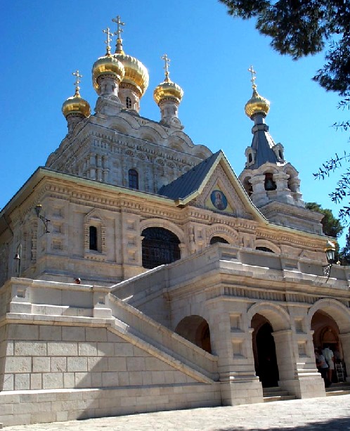 There are many beautiful Churches in Jerusalem. This is one of my favorites - the Russian Orthodox Church of Mary Magdalene. It is located on the Mount of Olives near the Garden of Gethsemane. The Church is located on the grounds of a convent in which a number of Russian Orthodox nuns live.