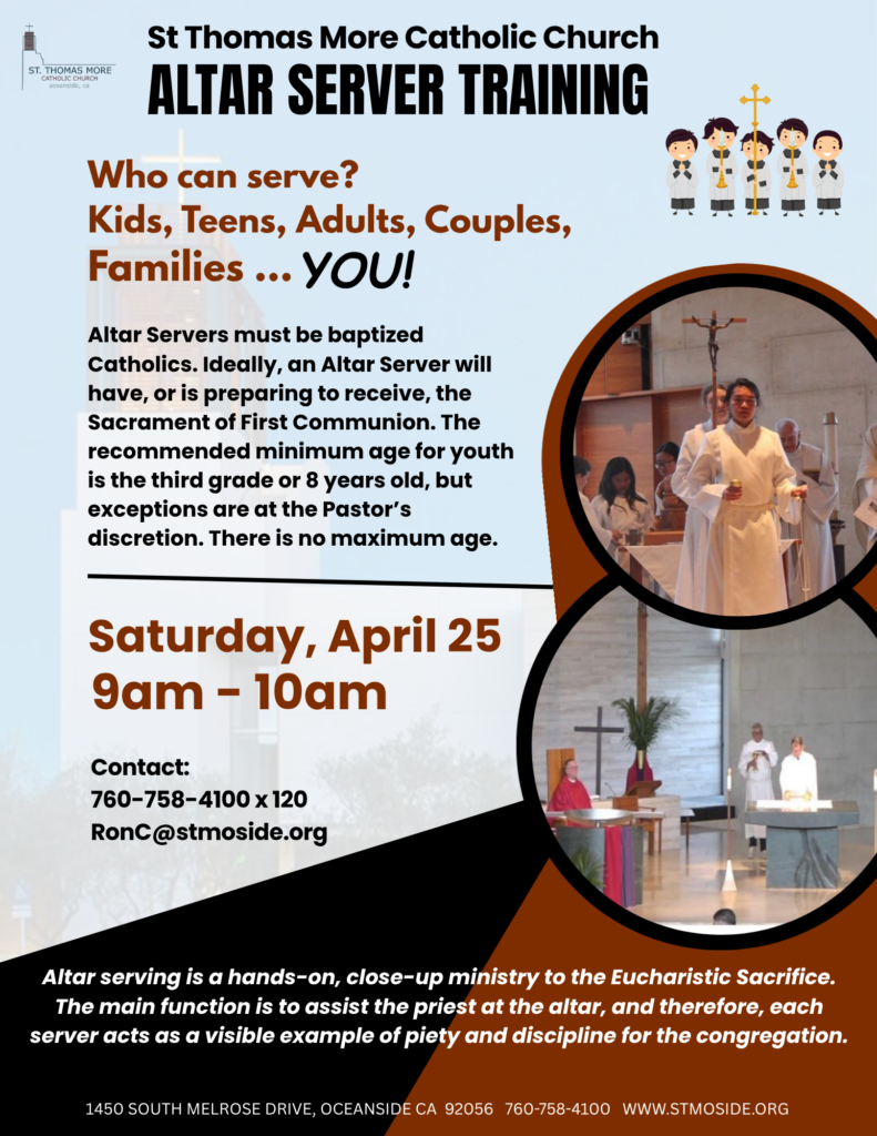 Altar Servers must be baptized Catholics. Ideally, an Altar Server will have, or is